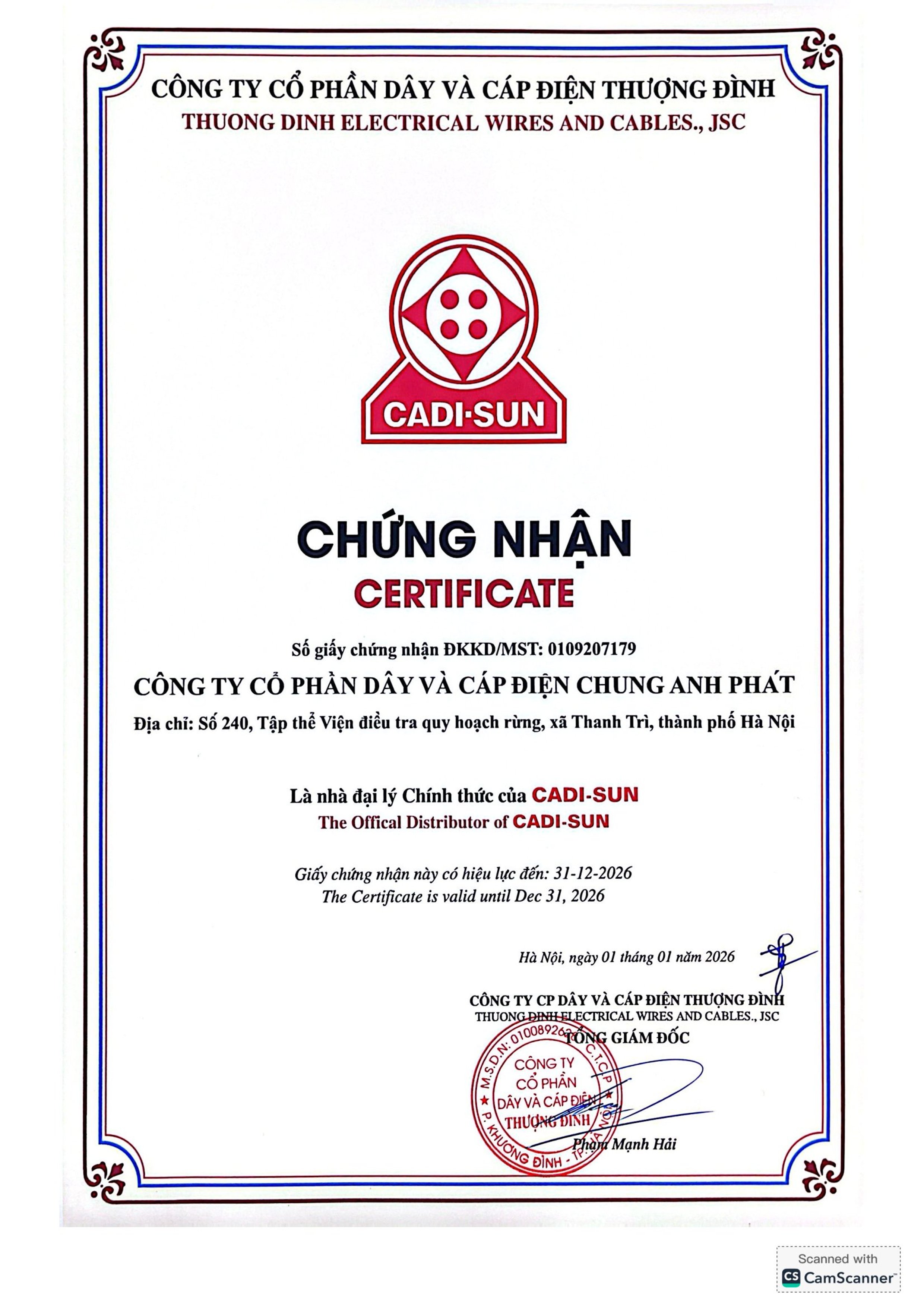 CÔNG TY CP DÂY VÀ CÁP ĐIỆN CHUNG ANH PHÁT